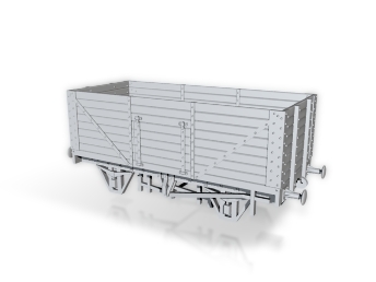This model represents an 18ft, 8 plank open wagon with side doors as commonly used to transport coal and other minerals across Britain's rail network. While no attempt was made to model a specific wagon it is similar in style to the Railway Clearing House design of 1923 and is available with one of three brake arrangements (see here for a discussion of wagon brakes).
